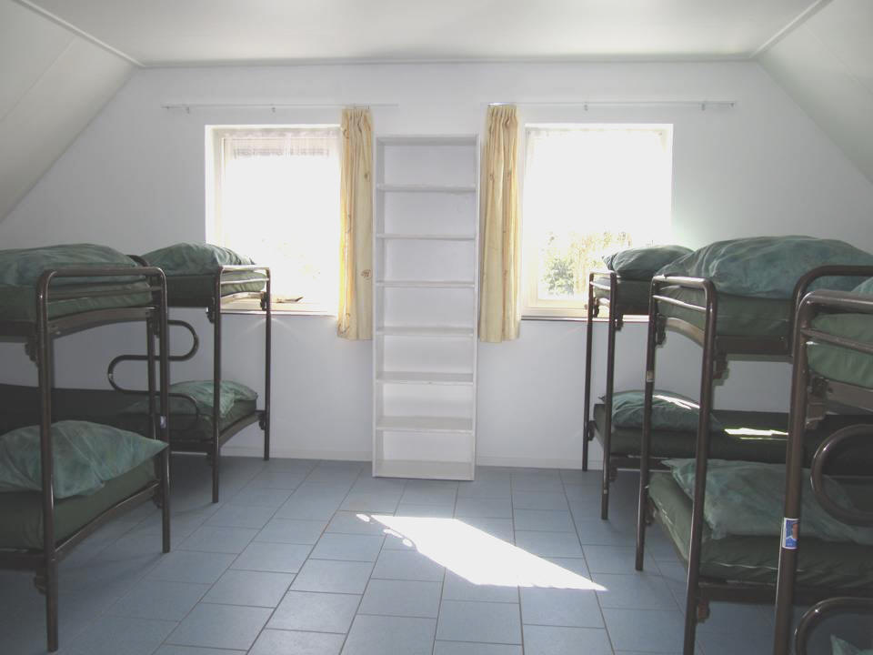 slaapkamers met stapelbedden, bestaande uit twee 12-persoonskamers, drie